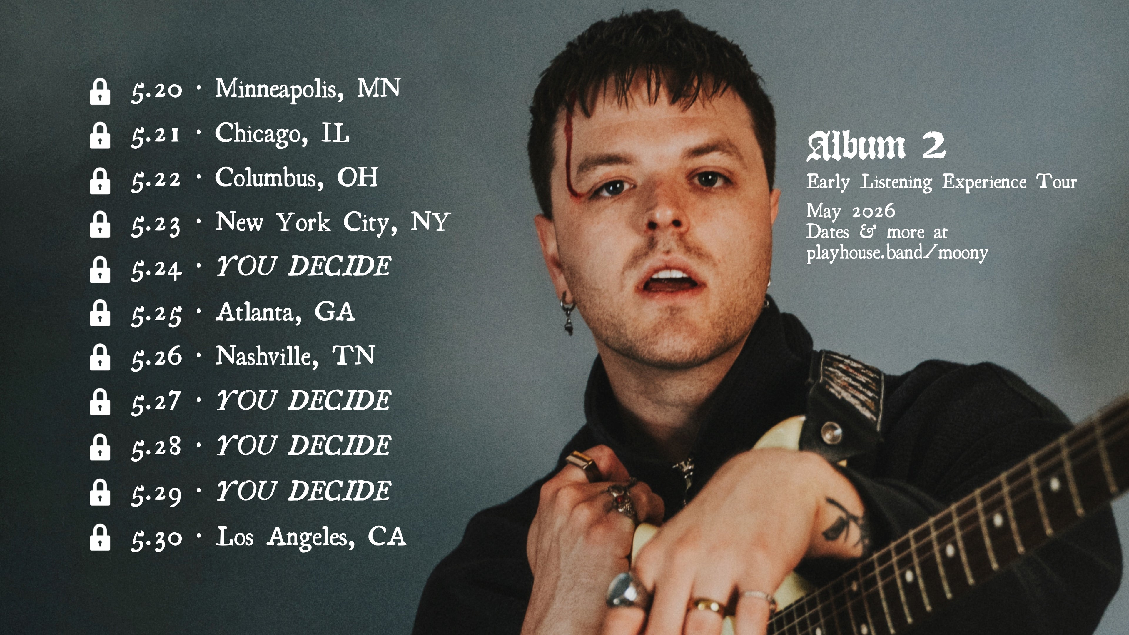 Album 2 is here and I'm releasing it in an entirely new way, starting with an exclusive intimate album listening party tour. You, me, and fellow moonies in a living room, breathing in the album together as one before it releases to the rest of the world.