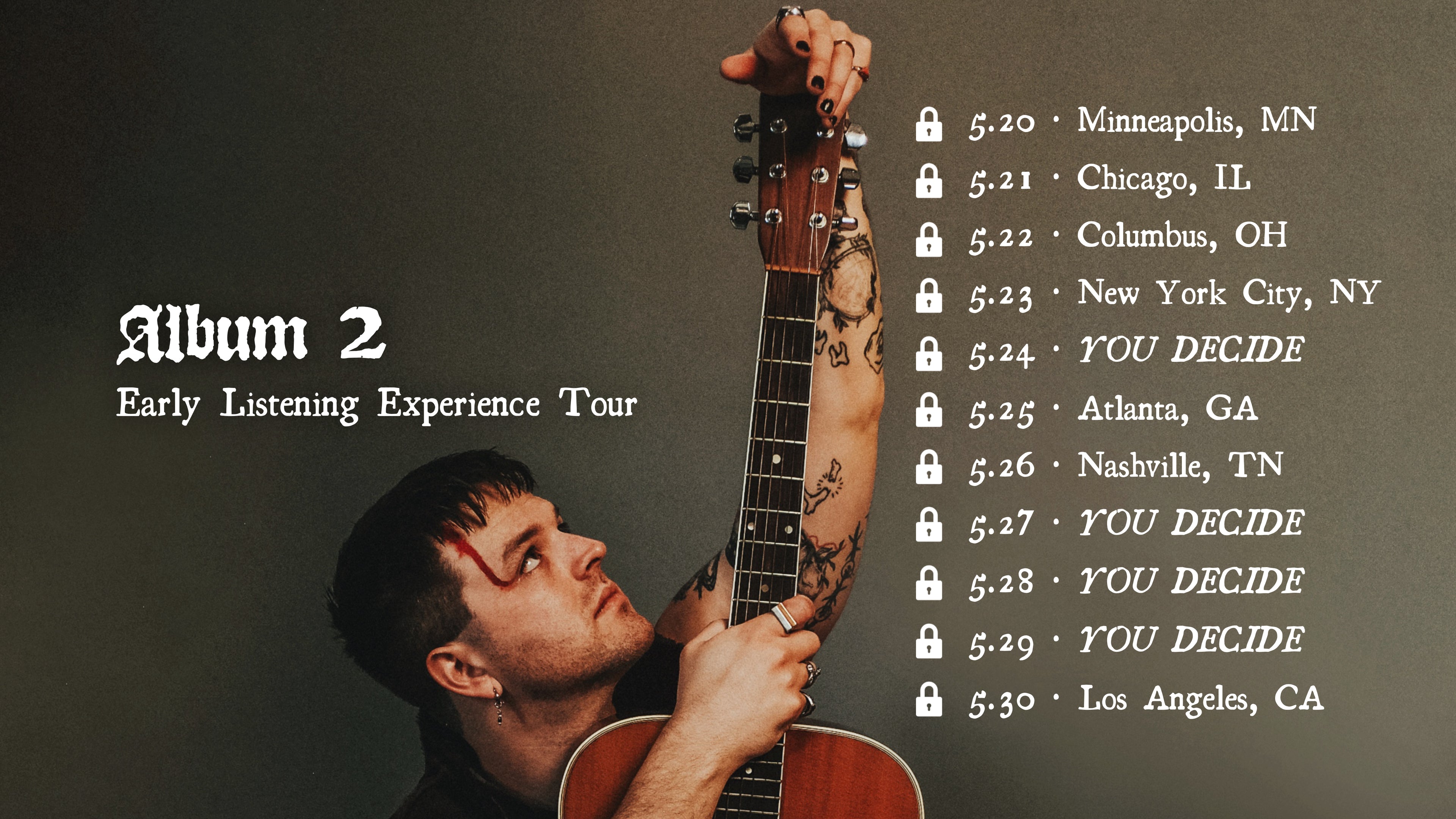 All new Album 2 merch will be available including signed vinyl, CDs, and more. There will be a Q&A following the listen-through as well as a short unplugged acoustic performance and a special surprise.